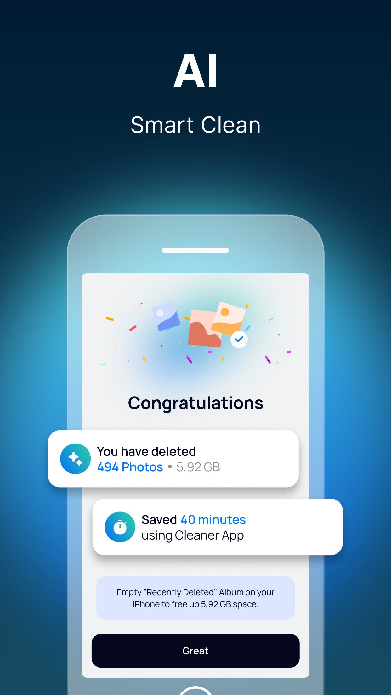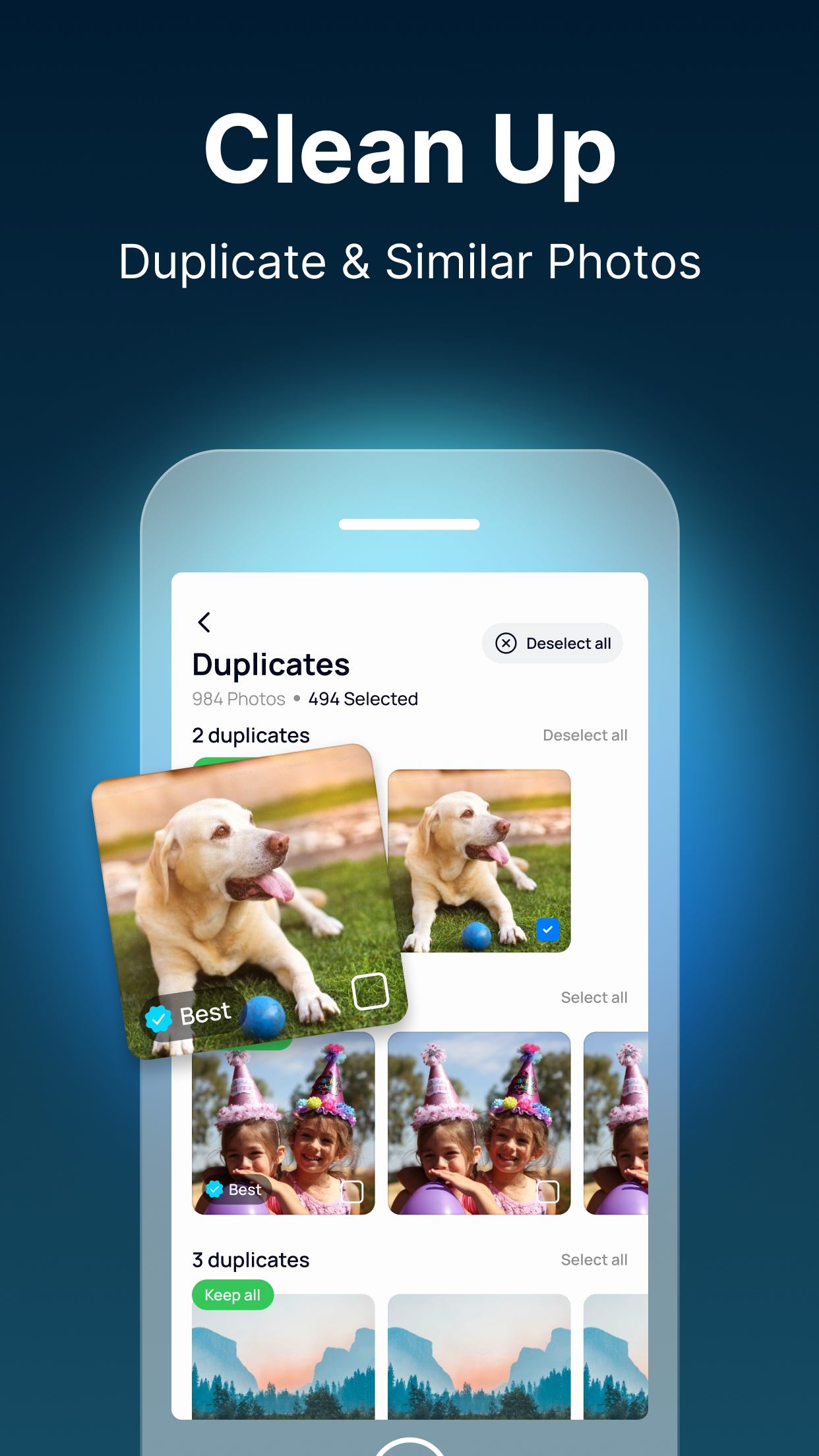 Is your device constantly running out of storage? Are you tired of sifting through countless duplicate photos and videos? AI Cleaner is here to rescue you! Our app offers a powerful yet easy-to-use solution to free up space on your phone quickly and efficiently